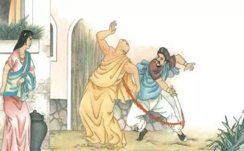 舍卫城中有一个婆罗门,他太太的性情极为暴恶,每天总是不分好坏地乱骂人。在一个节庆的日子,婆罗门心里想:今天一定会有亲朋好友来,这个泼妇如果向亲朋妇女们口出恶言,将会使我很难堪;不如先回避,不要到了事发再让大家看笑话。于是,婆罗门就携带稚子到乡下去。